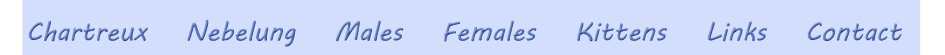 In this period of increasing communication with formerly closed Eastern-Europe it appeared that quite often long-haired Russians are being born. In 1995 Cora Cobb was contacted by a TICA judge who had seen a Russian Nebelung kitten in a home in Moscow, which was born from two Russians Blue parents. The first exchange of Nebelungen between Russia and the United States takes place soon after. Cora managed to contact the breeder of this Russian Nebelung and purchased the kitten, a Nebelung male called Winterday Georgin of Nebelheim. This Russian blue and Nebelung cattery in Moscow (called Zimnij Denn in Russian) has bred many Nebelungen over the years which in Russia have won many titles. Also the highest title in WCF, World Champion, has been won by a Nebelung from Winterday cattery.